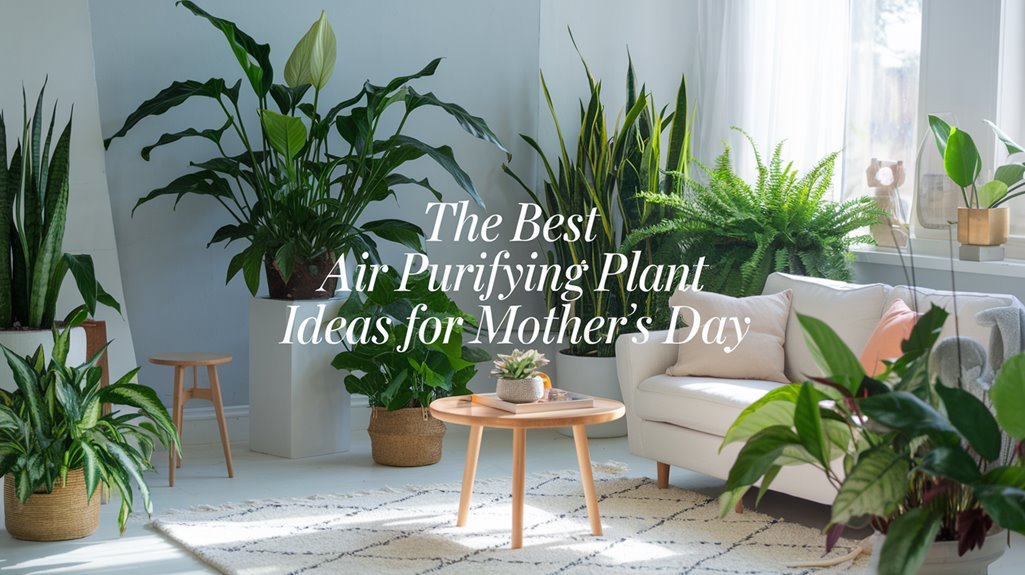 Selecting the right plants as a Mother’s Day gift can be both meaningful and practical, especially when you choose from the top air-purifying varieties. Consider the peace lily, renowned for its air-purifying qualities and easy care, symbolizing tranquility. The snake plant is perfect for busy moms, thriving in low light and converting CO2 into oxygen at night. The bamboo plant offers strength and resilience, removing toxins while being a thoughtful gift.