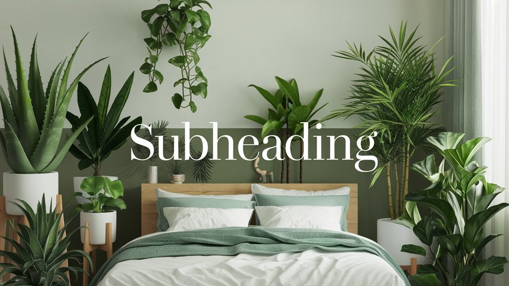 Incorporating air-purifying plants like Spathiphyllum (Peace Lily) and Sansevieria trifasciata (Snake Plant) into your bedroom can enhance air quality. Guarantee ideal growth by placing them in indirect sunlight and maintaining moderate soil moisture. Hedera helix (English Ivy) and Aloe barbadensis (Aloe Vera) thrive in well-drained soil with occasional watering. Epipremnum aureum (Pothos) and Dracaena spp. are low-maintenance, needing minimal light. With proper care, these plants will improve your bedroom’s ambiance and air quality.