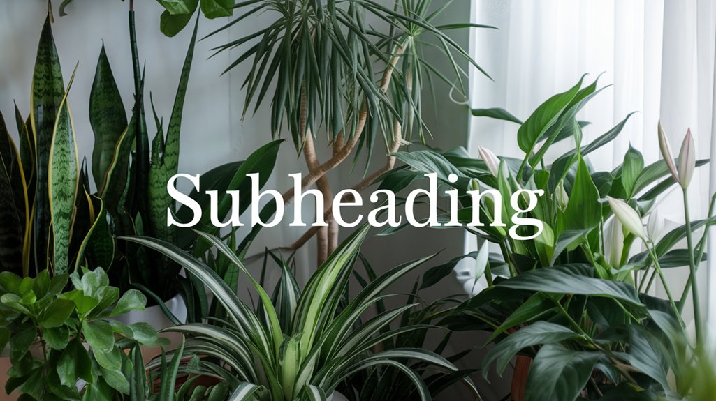 For a small space craving ideal air quality, consider Peace Lily and Snake Plant as your top picks. The Peace Lily excels in low light, purifying carbon monoxide and formaldehyde. Meanwhile, the Snake Plant is adaptable, releasing oxygen at night to maintain a fresher environment. Marble Queen Pothos and English Ivy are additional air purifiers, absorbing VOCs and other airborne pollutants. As you explore further, you’ll discover strategic plant placement maximizes their purifying capabilities.