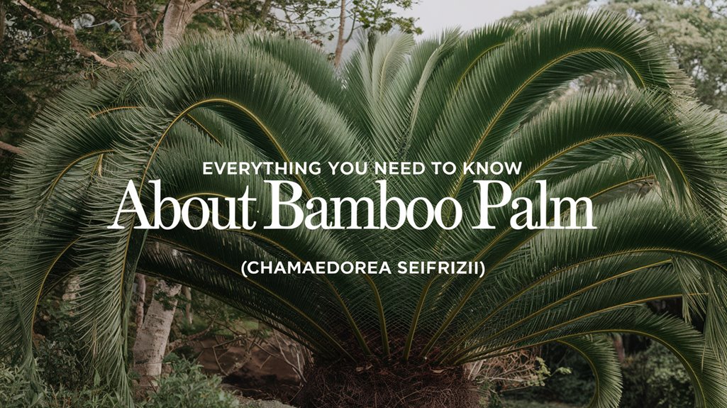 When exploring Bamboo Palm varieties, you’ll find that Chamaedorea seifrizii stands out due to its elegant appearance and adaptability as a houseplant. This variety, with its clumping growth habit, forms multiple slender stems reaching 3 to 8 feet, contributing to its lush, tropical appearance.