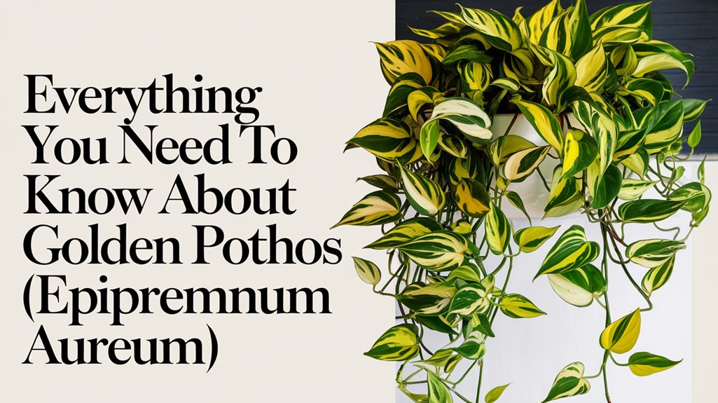 The Golden Pothos, or Epipremnum aureum, is renowned for its vibrant golden-yellow variegation on heart-shaped leaves, perfect for indoor decor.