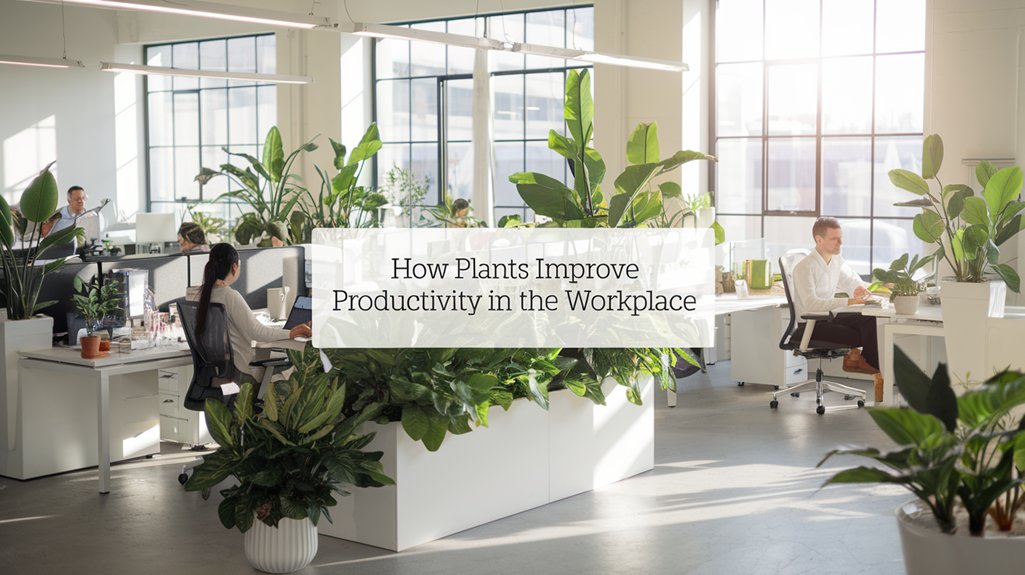 By incorporating plants into your workspace, you can boost employee productivity by up to 15%. Greenery enhances focus, concentration, and memory retention, making a more inviting atmosphere for work. With one plant per three employees, you’ll notice improvements in air quality and mental clarity, reducing stress and improving well-being. Plants also regulate humidity and temperature, creating comfortable conditions. As employees feel more valued, overall job satisfaction and team cohesion increase. Discover how plants can transform your workplace productivity further.