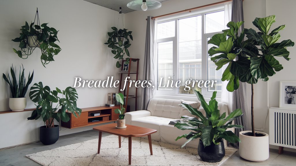 Transform your living room into a green oasis with air-purifying plants like the resilient Snake Plant and classic Rubber Plant. These natural wonders remove toxins while enhancing your decor. Consider the hardy Dracaena ‘Janet Craig’ or a trailing English Ivy for elegance. For low-maintenance beauty, Pothos and Bamboo Palm offer tropical flair with minimal effort. Each plant boasts unique benefits, promising improved air quality and aesthetic charm. Discover how these botanical selections can invigorate your space.