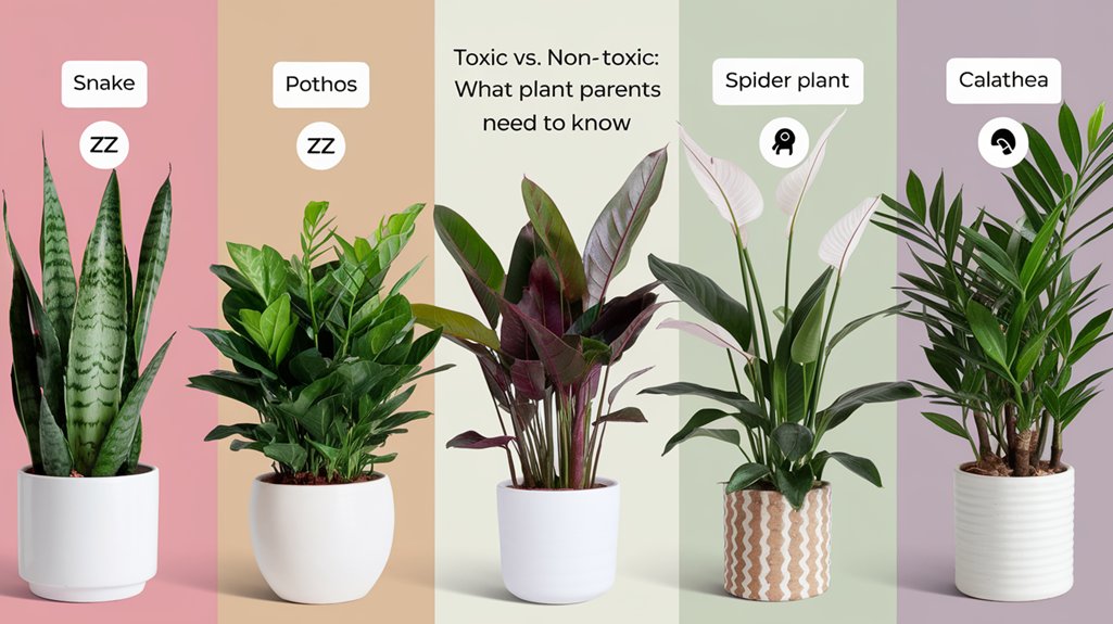 Understanding the difference between toxic and non-toxic plants is essential for any plant parent. Toxic plants contain alkaloids, glycosides, or oxalates that can cause anything from minor irritation to severe poisoning in both humans and pets. Reactions may vary based on individual sensitivity, with symptoms like vomiting, diarrhea, or lethargy indicating poisoning. For safety, verify plant species, keep harmful plants out of reach, and use trusted resources like the ASPCA for guidance. Gain insight into plant safety strategies ahead.